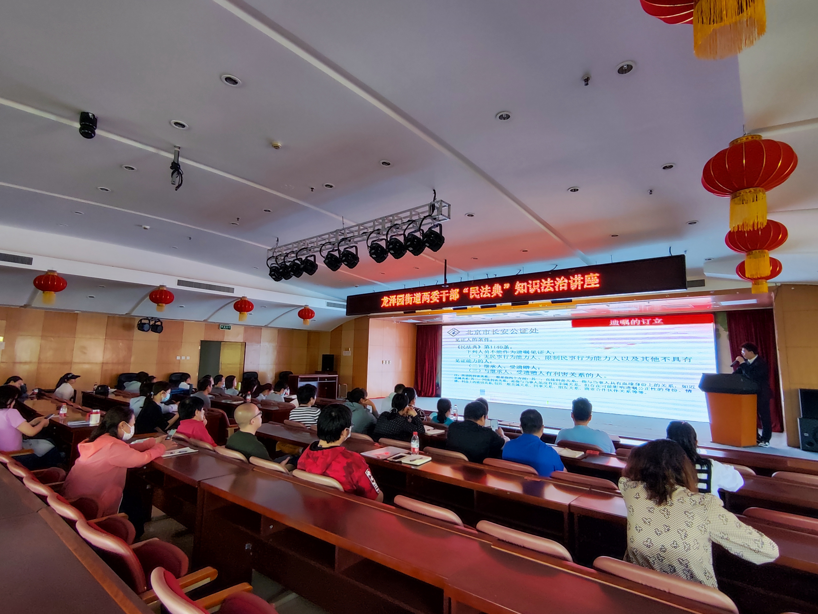 2023年5月23日,北京市长安公证处与昌平区龙泽园街道联合开展民法典知识讲座活动,街道下辖35个社区(村)的50多名社区干部参加培训。