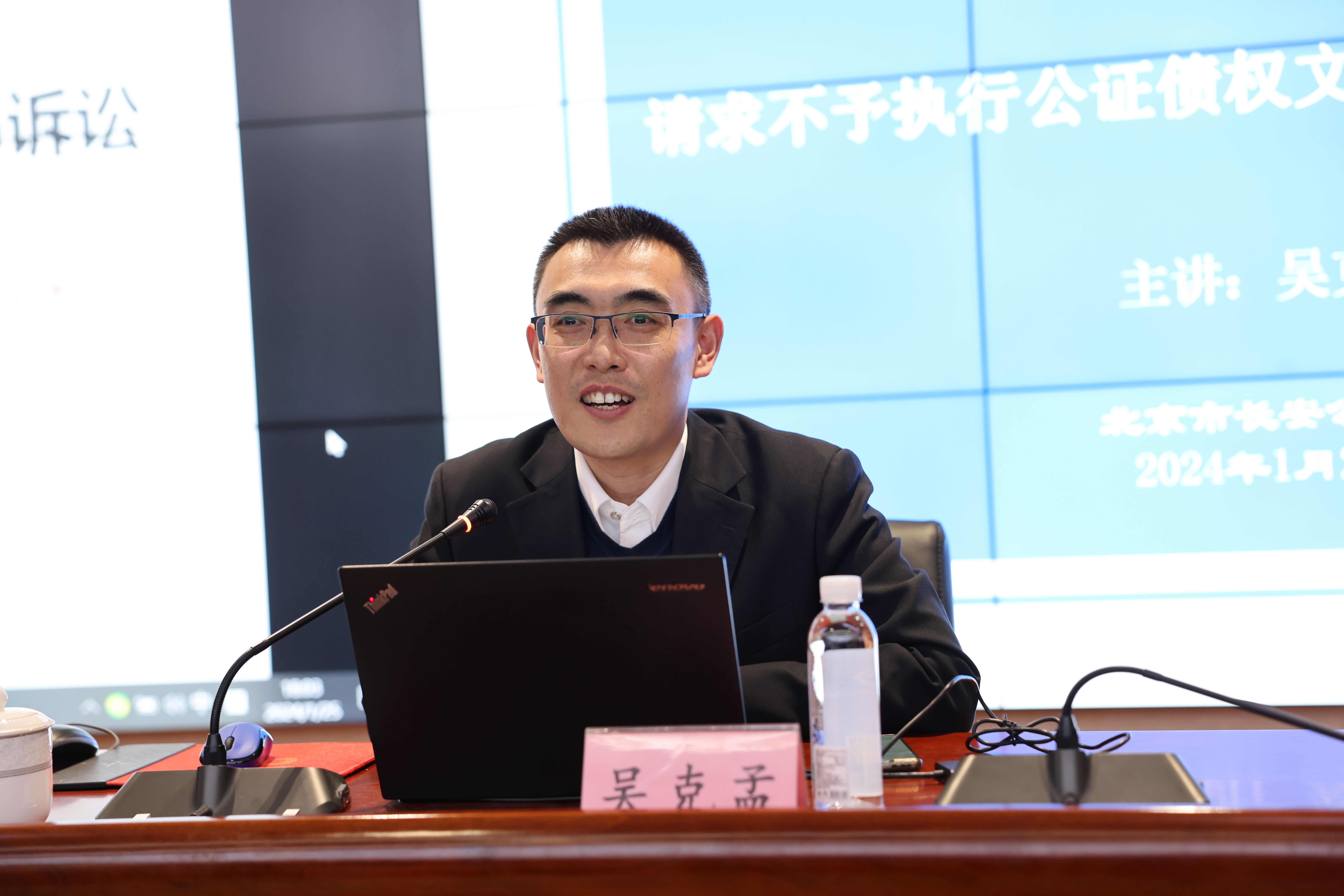 2024年1月25日,长安公证处邀请北京市朝阳区人民法院法院温榆河法庭庭长吴克孟作专题授课。