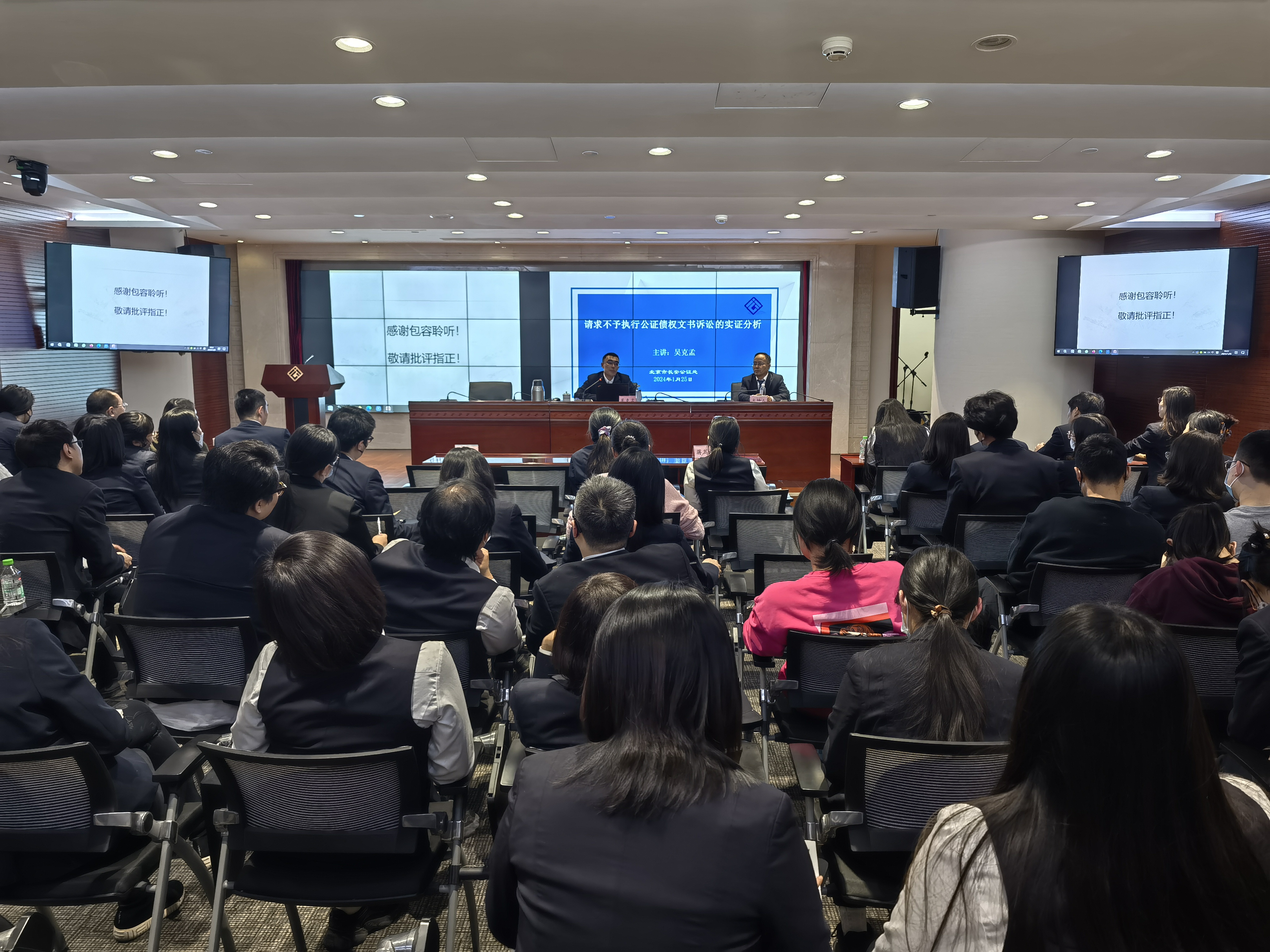 吴克孟庭长以《请求不予执行公证债权文书诉讼的实证分析》为主题,重点围绕导致不予执行的实体问题分析、借贷纠纷的常见问题梳理、导致不予执行的程序因素检索等内容,从司法审判的视角,结合大量实际案例和数据资料,对基于债权实体因素提起的请求不予执行公证债权文书诉讼的模式、可能引起不予执行的情形、公证审查审核应注意的问题、金融贷款常见法律问题等进行深入剖析、讲解,并提出专业的解决思路和意见建议。