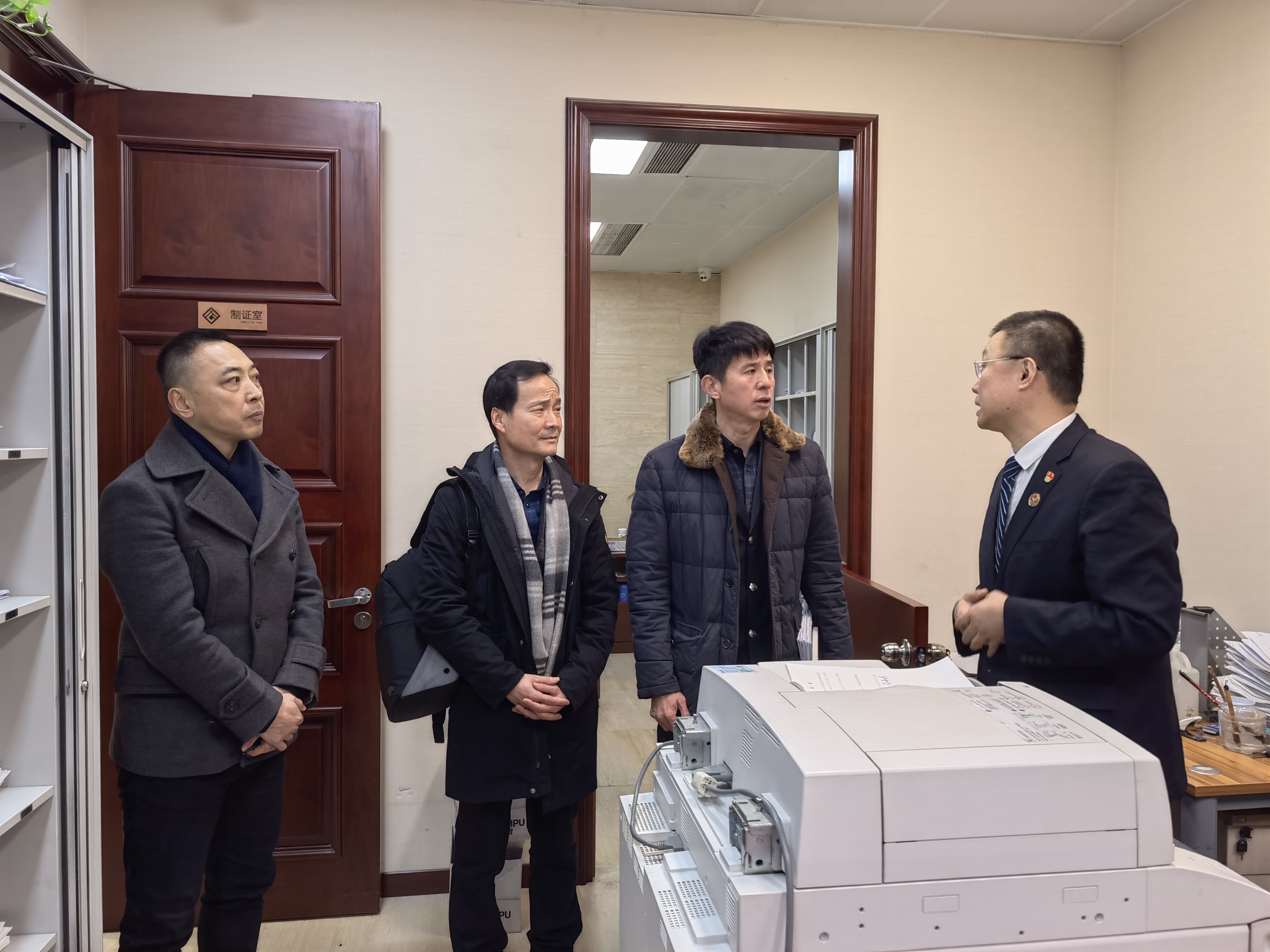 调研组一行参观了长安公证处接待大厅、接待室、档案室、阅览室、党团活动室和党建文化墙等场所,调研了解了公证服务办理流程、近期业务受理等情况。