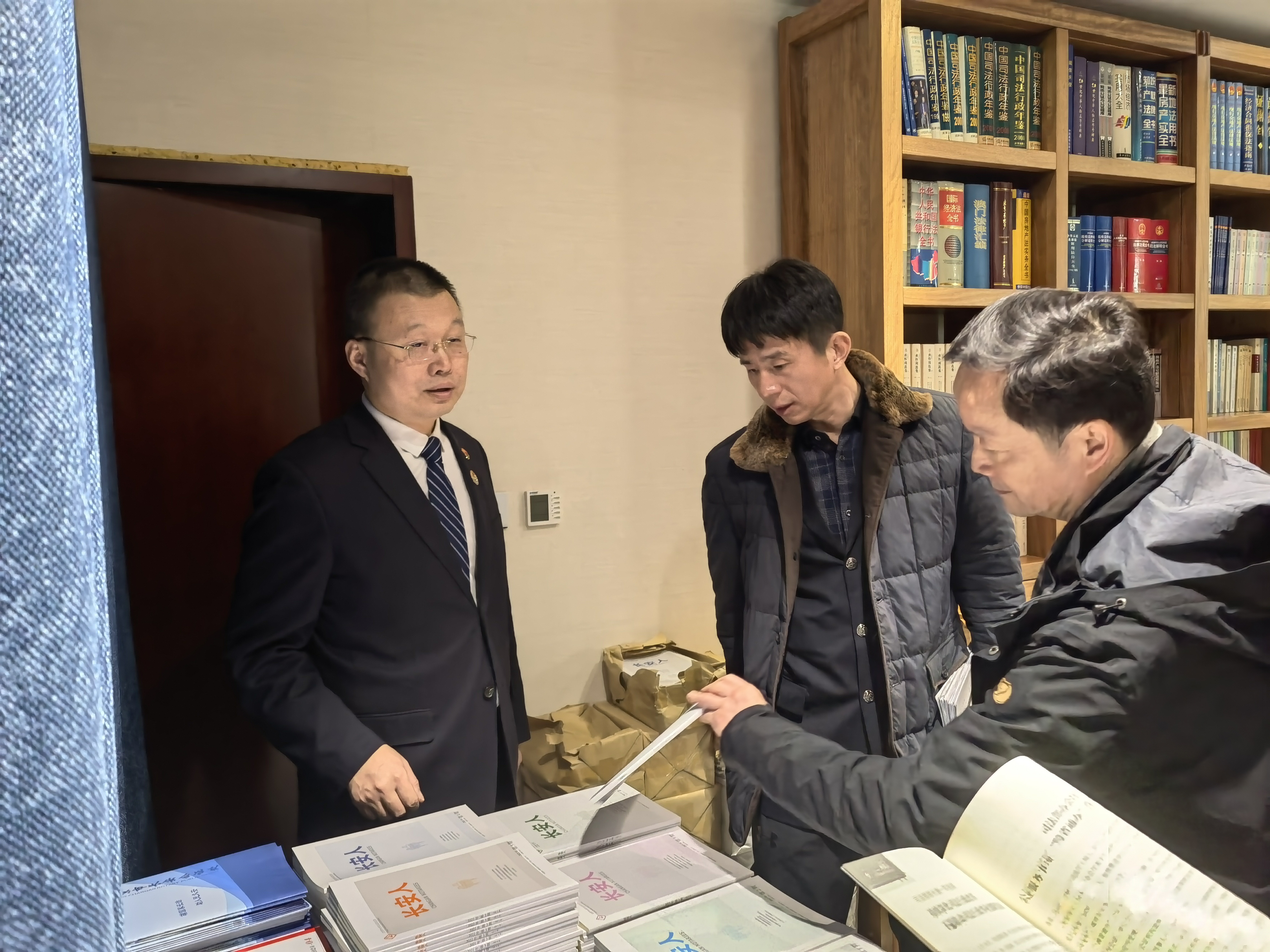 入选(首届)骨干型人才的业务六部主任、公证员刘闻彦,业务八部主任、公证员董皓,业务七部公证员杨少飞参加座谈。