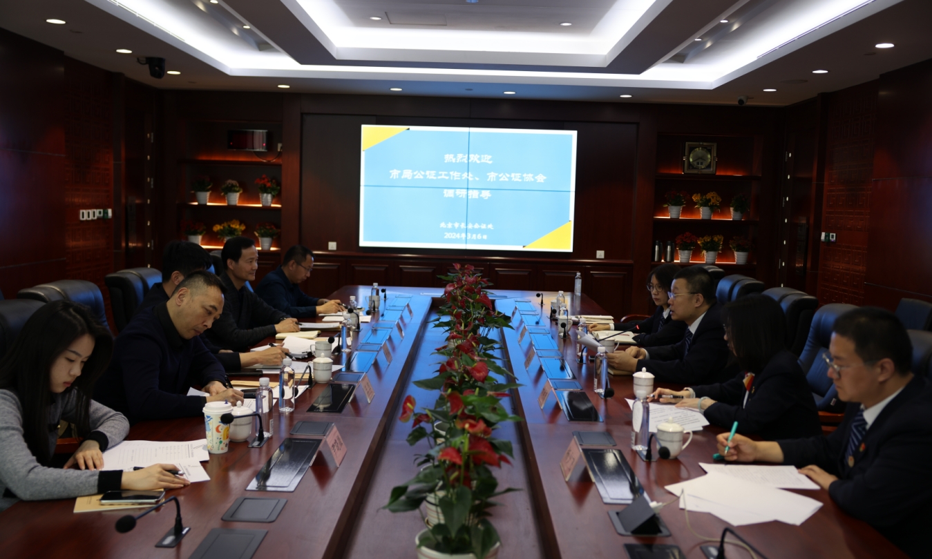 2024年3月6日,北京市司法局公证工作处副处长周凯、市公证协会秘书长胡勇等一行五人到长安公证处调研。