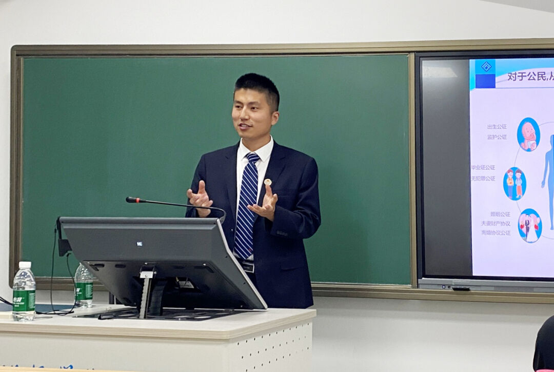 2024年5月10日,北京市长安公证处家事法律中心主任、公证员胡志勇应邀到国际关系学院,在硕士研究生《法律职业伦理》的课堂上分享公证法律知识,传播公证价值理念,提升公证在高校的影响力。
