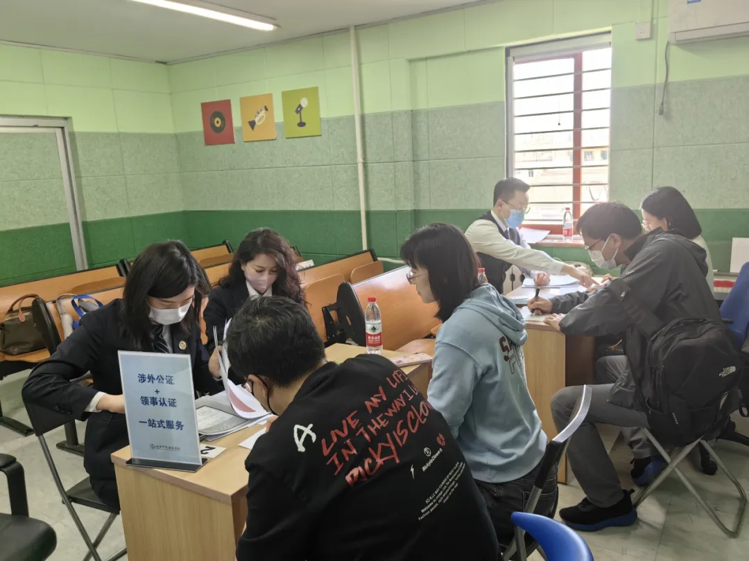 为缩短办证周期,更好地提供“涉外公证+领事认证”一站式法律服务,公证员第一时间了解当事人的诉求和具体情况,上门为当事人提供了“集受理审查审签为一体”的一站式服务,现场为学生及家长办理了出生医学证明、声明书等公证事项。办理完毕后,认证专业人员收取和审查相关材料,办理认证预受理手续。