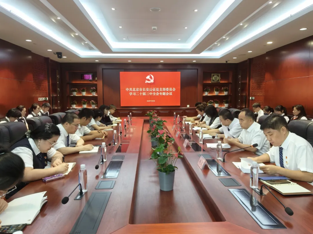 2024年7月25日,北京市长安公证处党支部召开学习党的二十届三中全会专题会议。会议集中学习了《中国共产党第二十届中央委员会第三次全体会议公报》,传达了市司法局党委扩大会议精神。