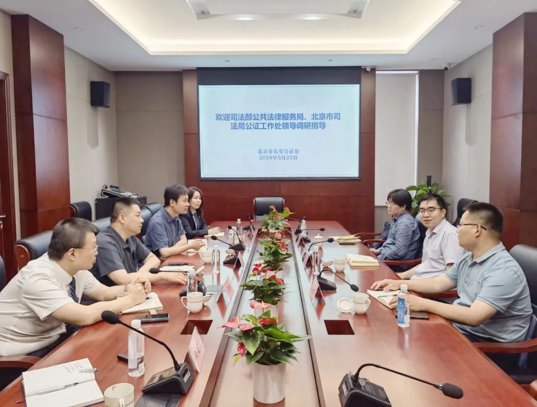2024年5月22日,司法部公共法律服务局公证工作处处长熊飞等一行3人到北京市长安公证处回天分部调研。北京市司法局公证工作处相关负责同志陪同调研。