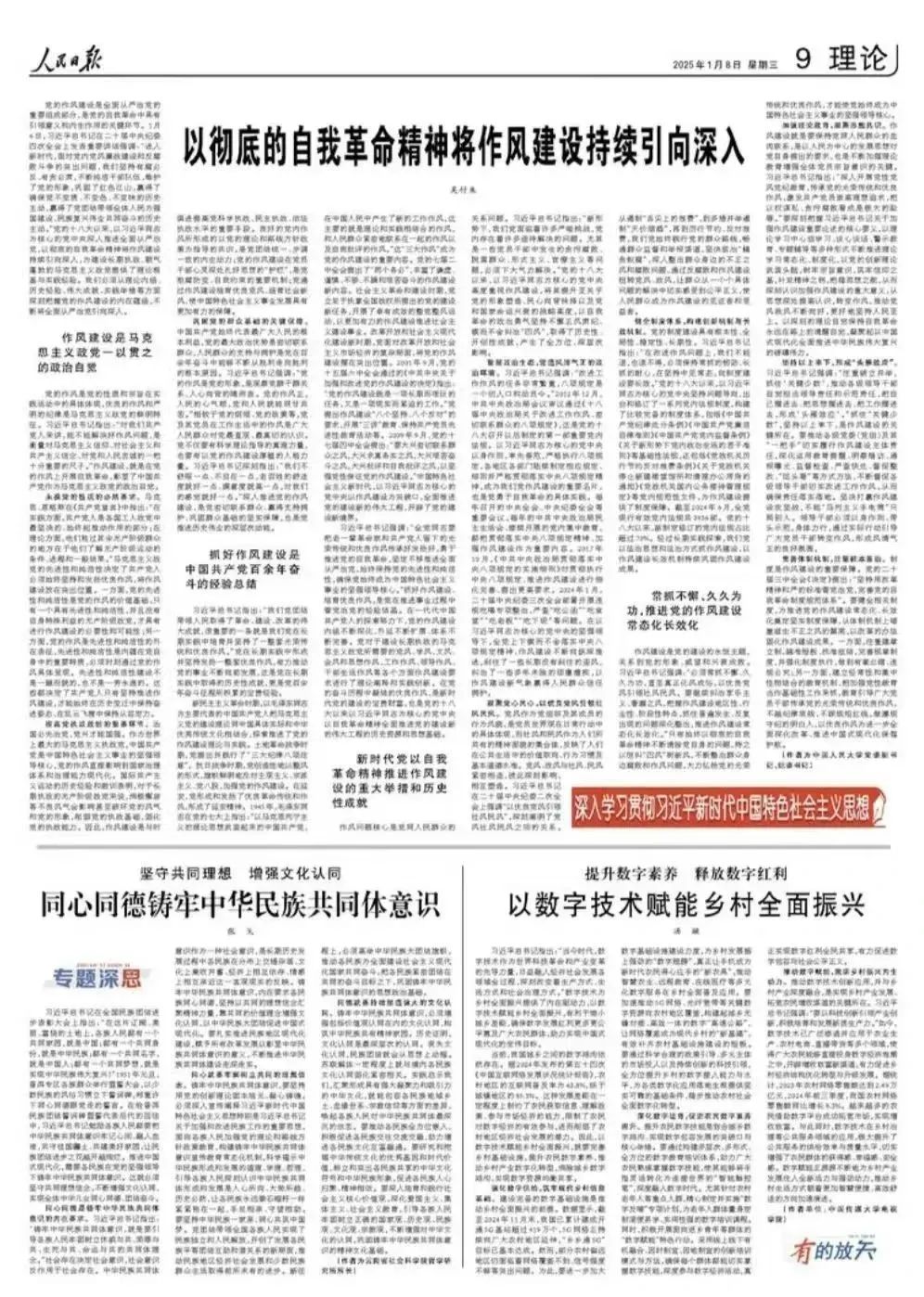 完善体制机制,注重标本兼治。制度是作风建设的重要保障。党的二十届三中全会《决定》提出:“坚持用改革精神和严的标准管党治党,完善党的自我革命制度规范体系”。要健全相关制度,为推进党的作风建设常态化、长效化奠定坚实制度保障,从体制机制上堵塞滋生不正之风的漏洞,以改革的办法固化作风建设成果。一方面,注重建章立制,瞄准短板、找准症结,完善规章制度,并强化制度执行,做到有章必循、违规必究;另一方面,建立经常性和集中性相结合的教育机制,把加强党性教育当作基础性工作来抓,教育引导广大党员干部传承党的光荣传统和优良作风,不越纪律底线,不踩规矩红线,做遵规守纪的明白人,以优良作风为进一步全面深化改革、推进中国式现代化保驾护航。