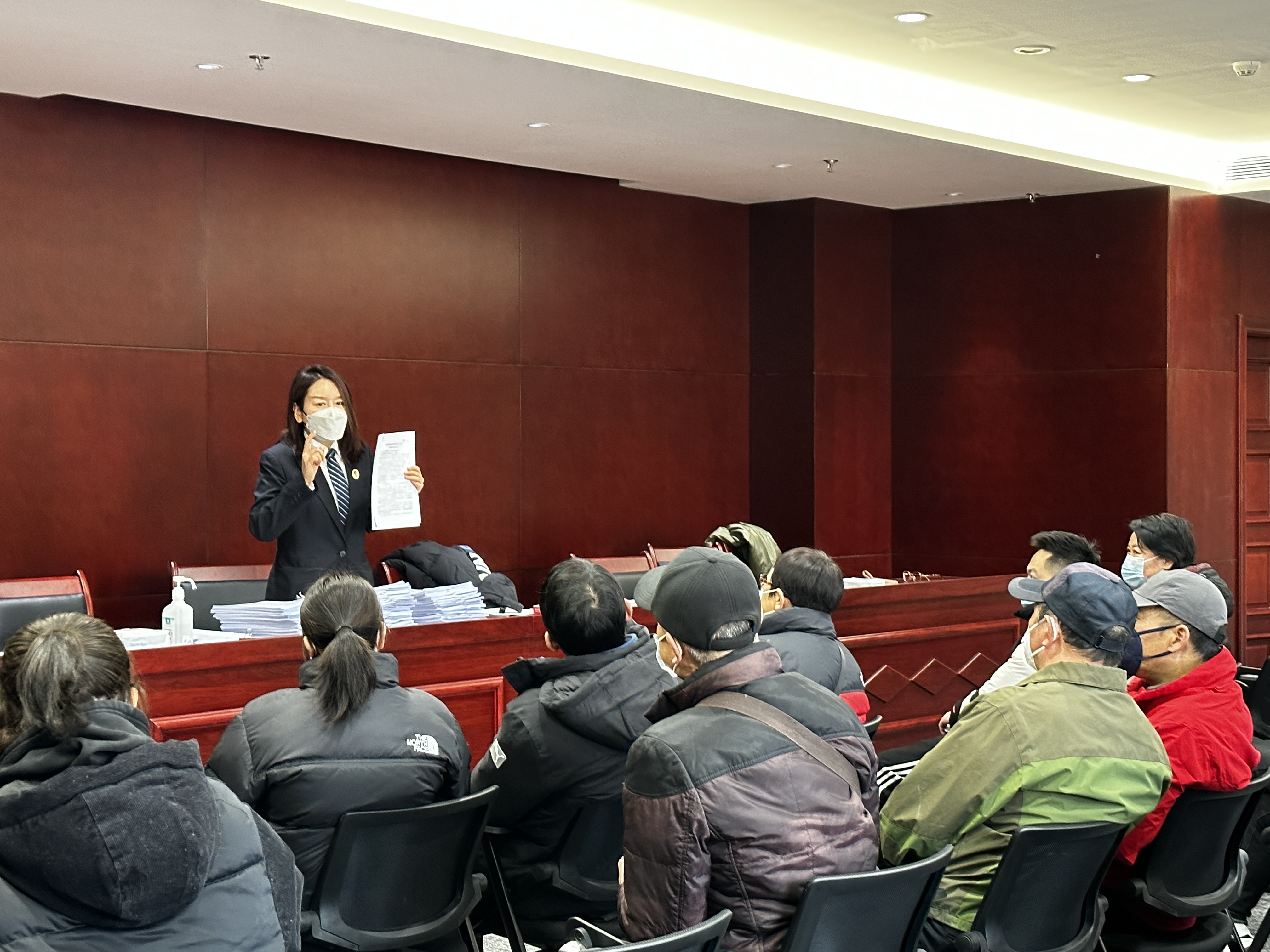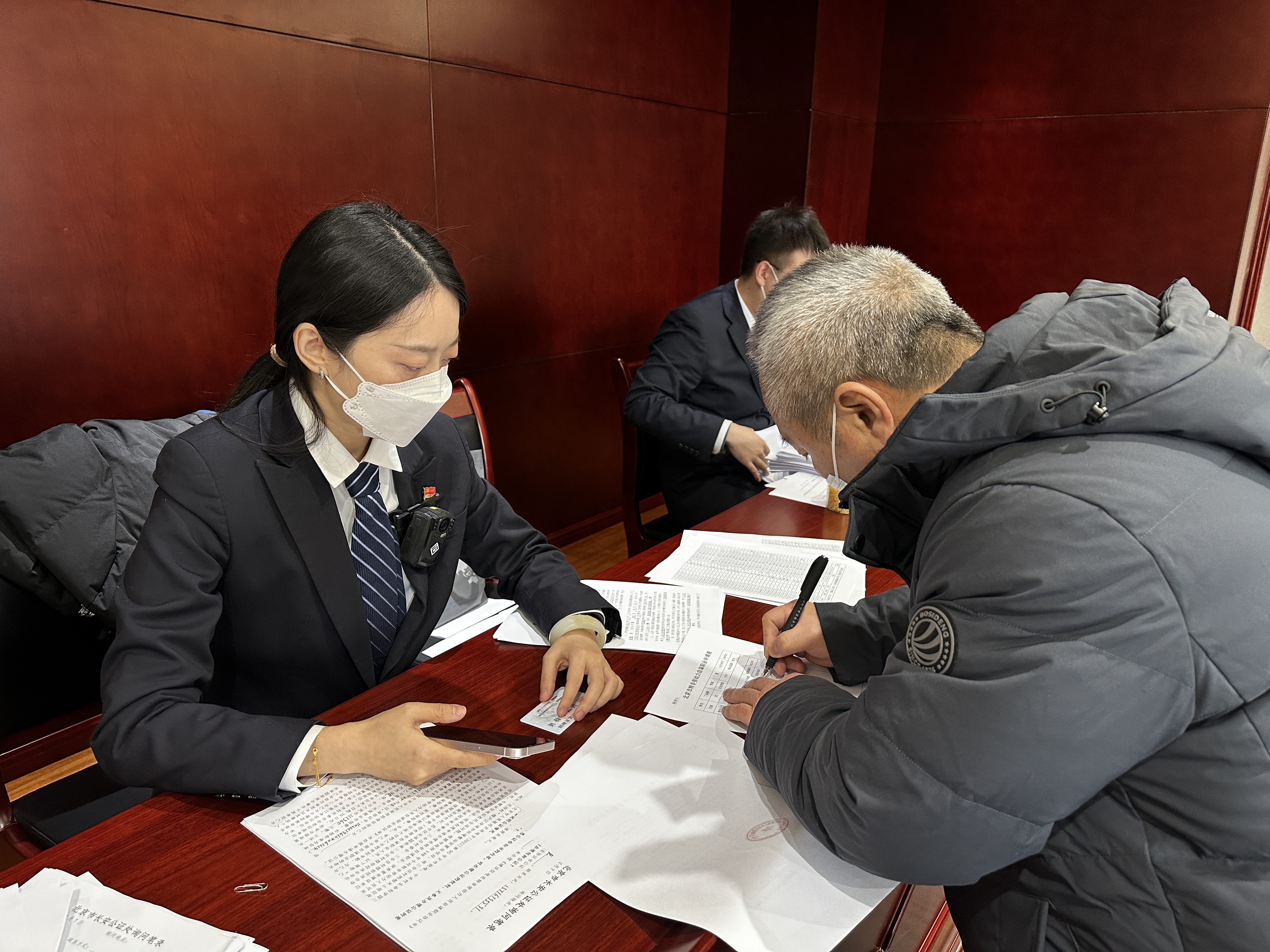 韩慧为现场群众讲解了协议书重点条款内容、协议书公证的法律意义、办理程序、注意事项等。虽然时间紧任务重,但整个工作现场有条不紊、紧张有序,7名公证人员通过一天的努力,圆满完成了协议书签署及群众析法释理等工作。公证人员专业的法律素养和周到细致的工作作风,受到签约群众和工作人员的高度认可。